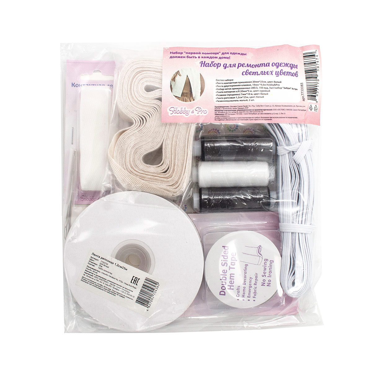 – временно соединить детали кроя или оформить подгибку края с помощью двусторонней клеевой ленты Hobby&Pro;