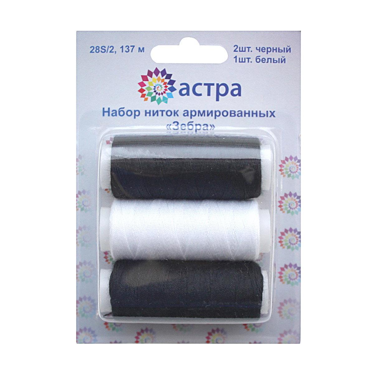 3. Набор ниток армированных 28S/2, 150 ярд, 3шт/набор 'Зебра' Астра.