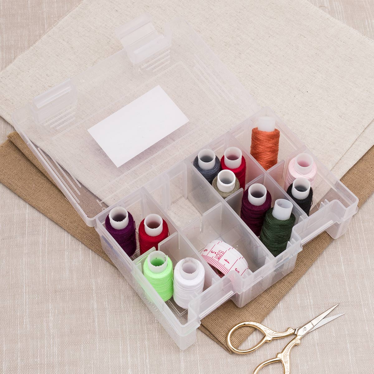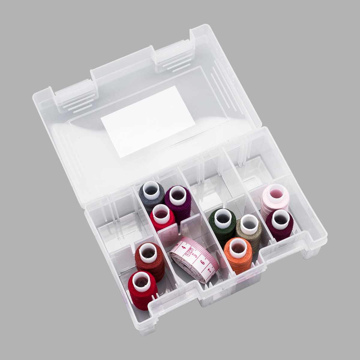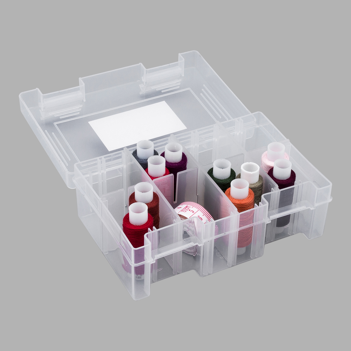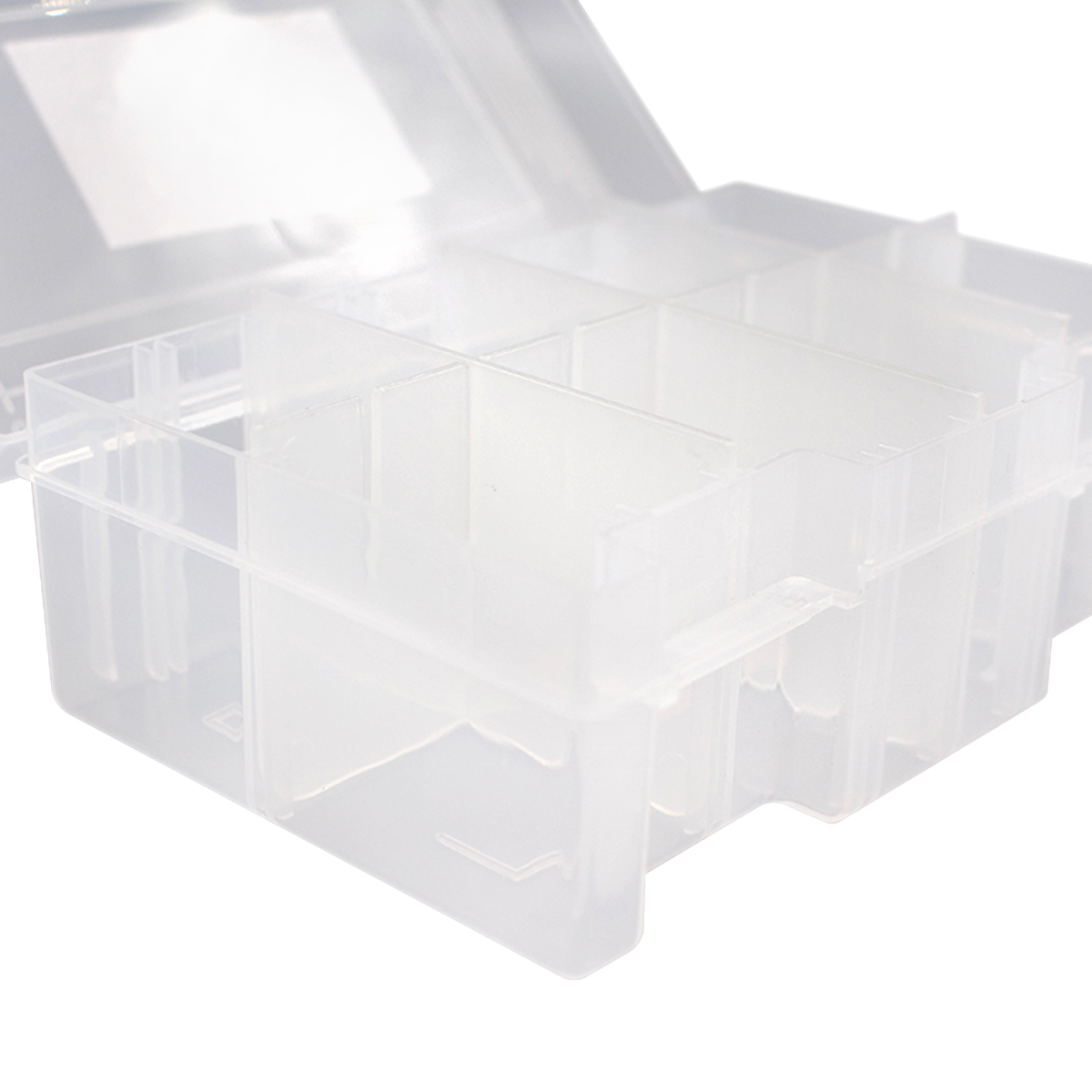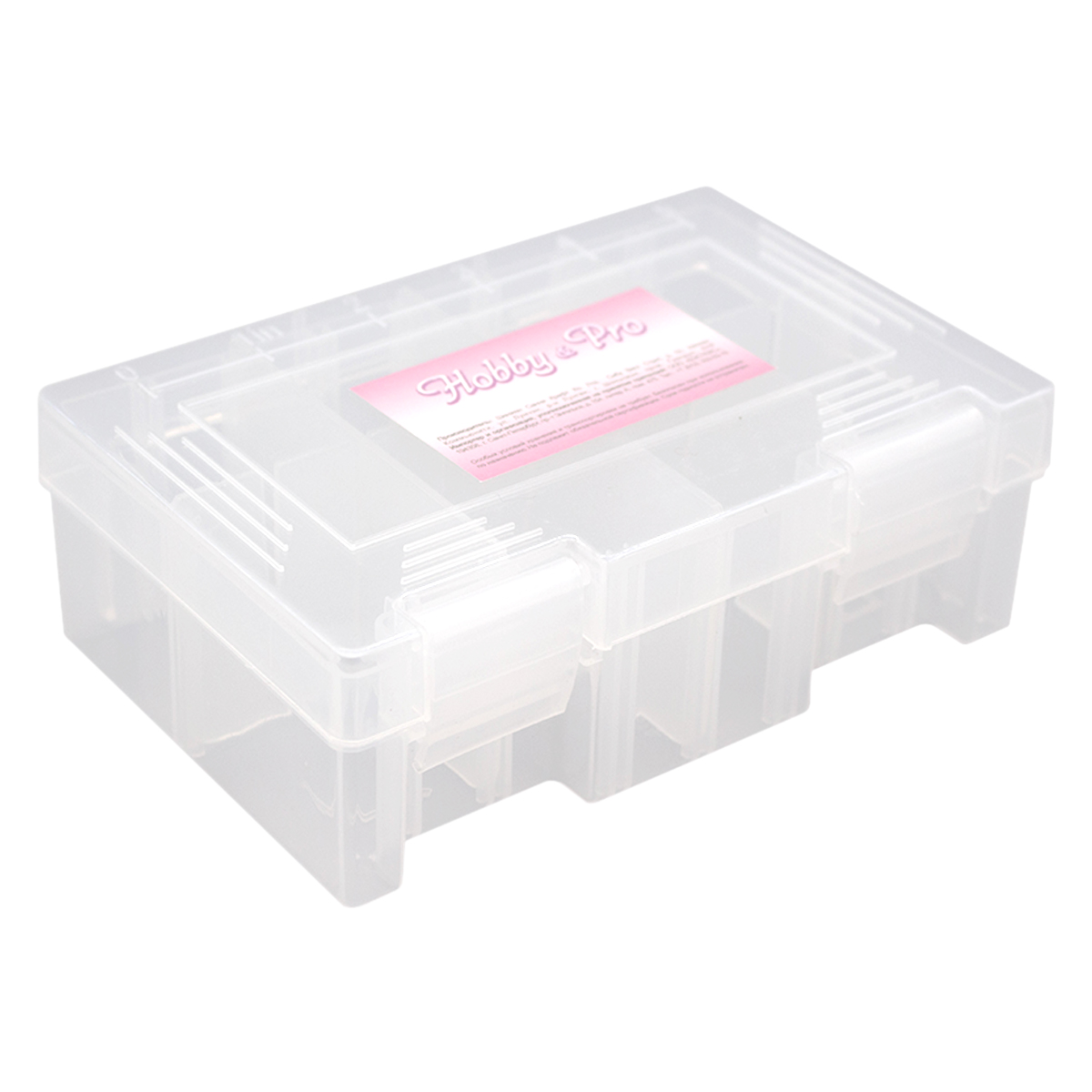 Пластиковый контейнер Hobby&Pro подходит для хранения бисера, бусин, пуговиц, лекарств, булавок и других мелочей. Внутри съемные перегородки. Они прочно устанавливаются в желобах. Вы можеет комбинировать их расположение как угодно - доступно более 10 вариантов. Снаружи на крышке есть разметка в дюймах. Благодаря крышке с плотно закрывающимися клипсами содержимое не потеряется. Корпус из прозрачного пластика позволяет видеть содержимое.
