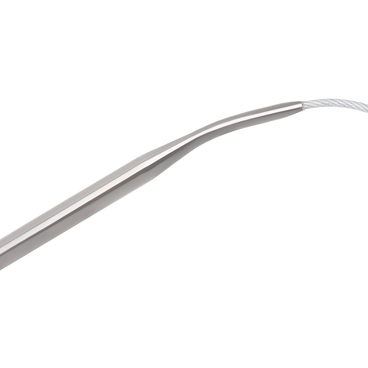 На переходе к тросику спицы изогнуты, чтобы петли легко соскальзывали на тросик.
