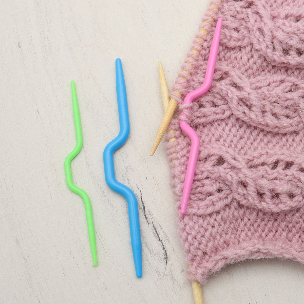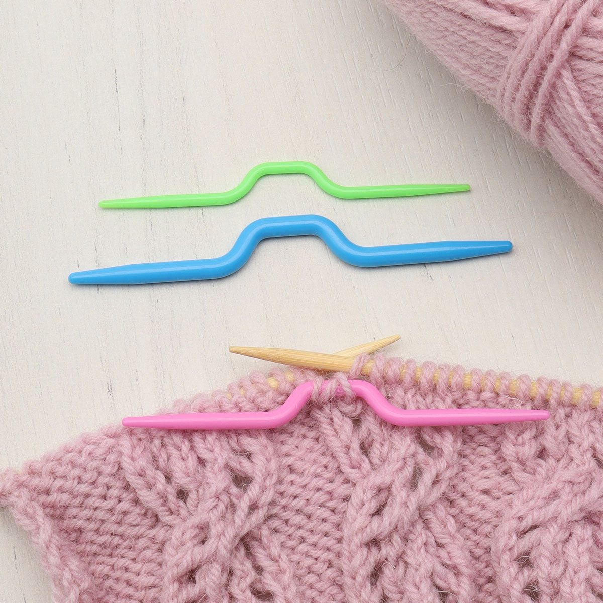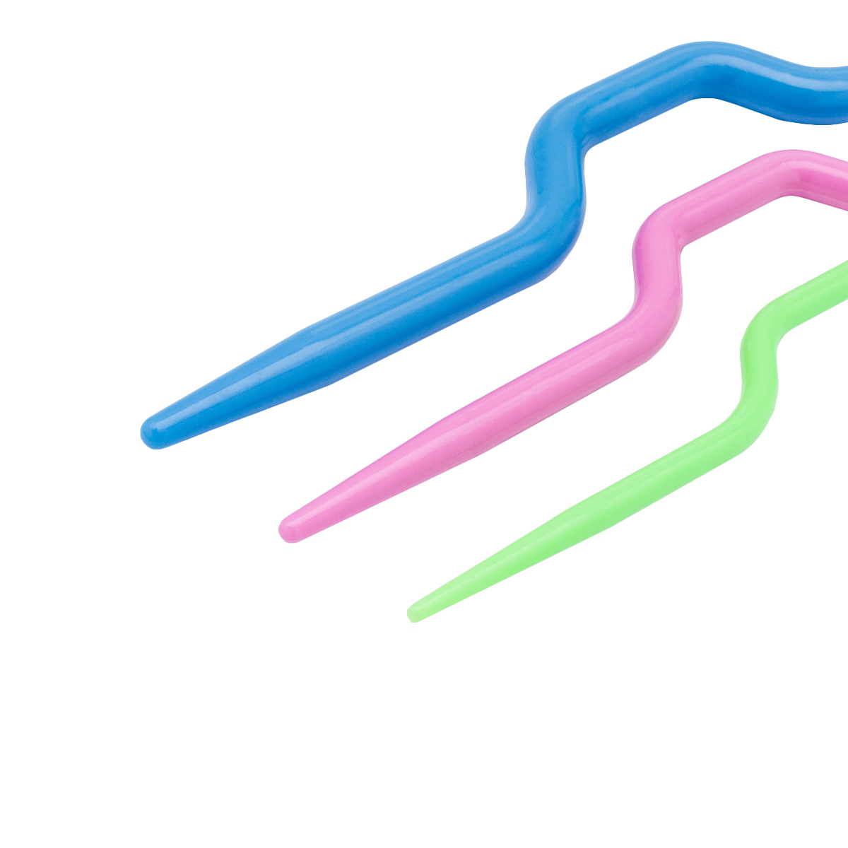 Вспомогательные изогнутые спицы Hobby&Pro используют при вязании объемных узоров (косы, араны), а также в качестве иглы для поднятия петель или временного снятия петель. Спицы изготовлены из практичного пластика (полипропилен PP), очень легкие, поэтому их легко носить с собой. Поверхность спиц гладкая, при вязании не повреждает даже деликатную пряжу, сохраняет ее структуру и ворс. Пряжа легко скользит по стержню, а благодаря изогнутой форме петли удобнее удерживать, они не соскальзывают. В упаковке 3 спицы разных цветов для петель разных размеров.