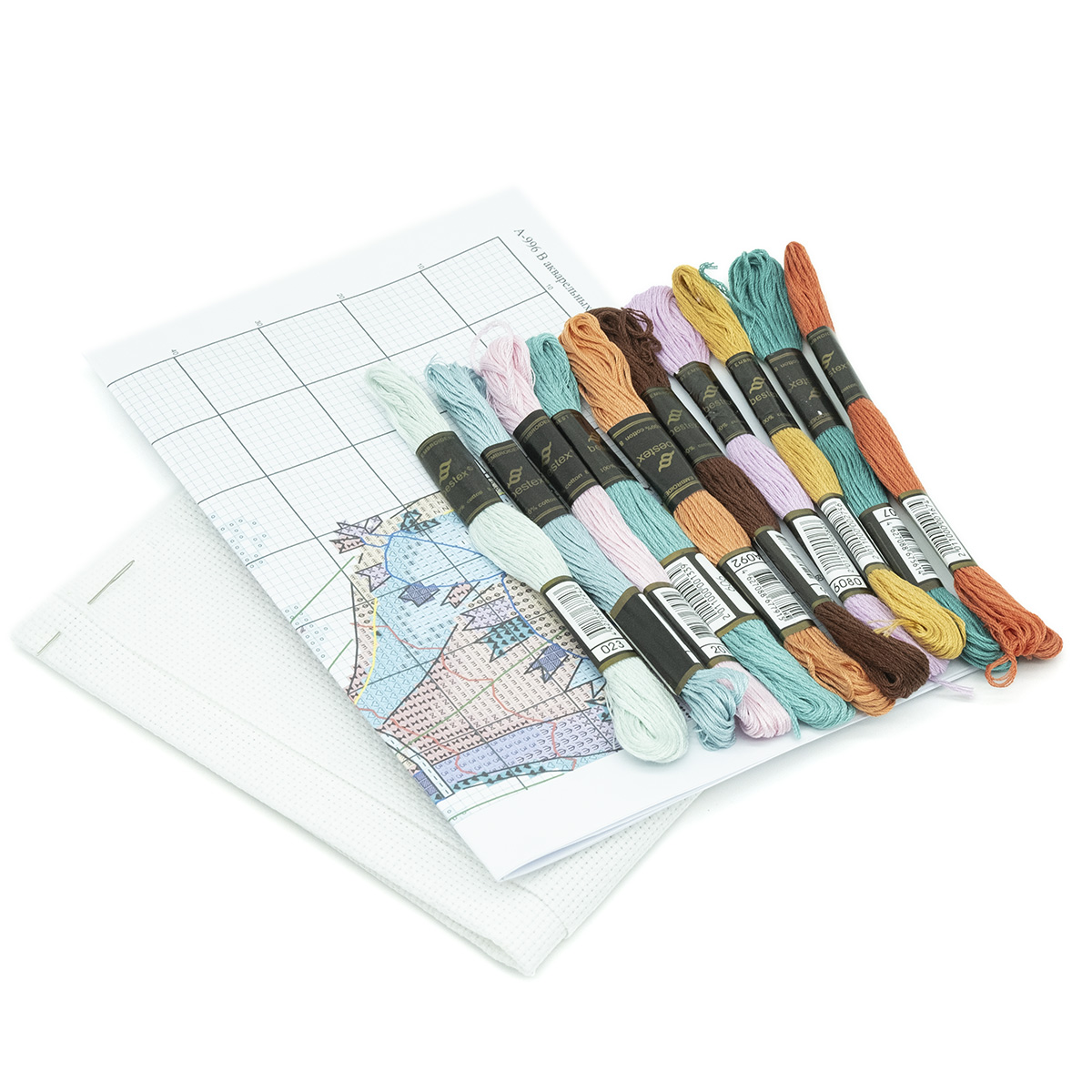 Канва Aida 14 ct белая, мулине, игла для мулине, цвето-символьная схема, инструкция